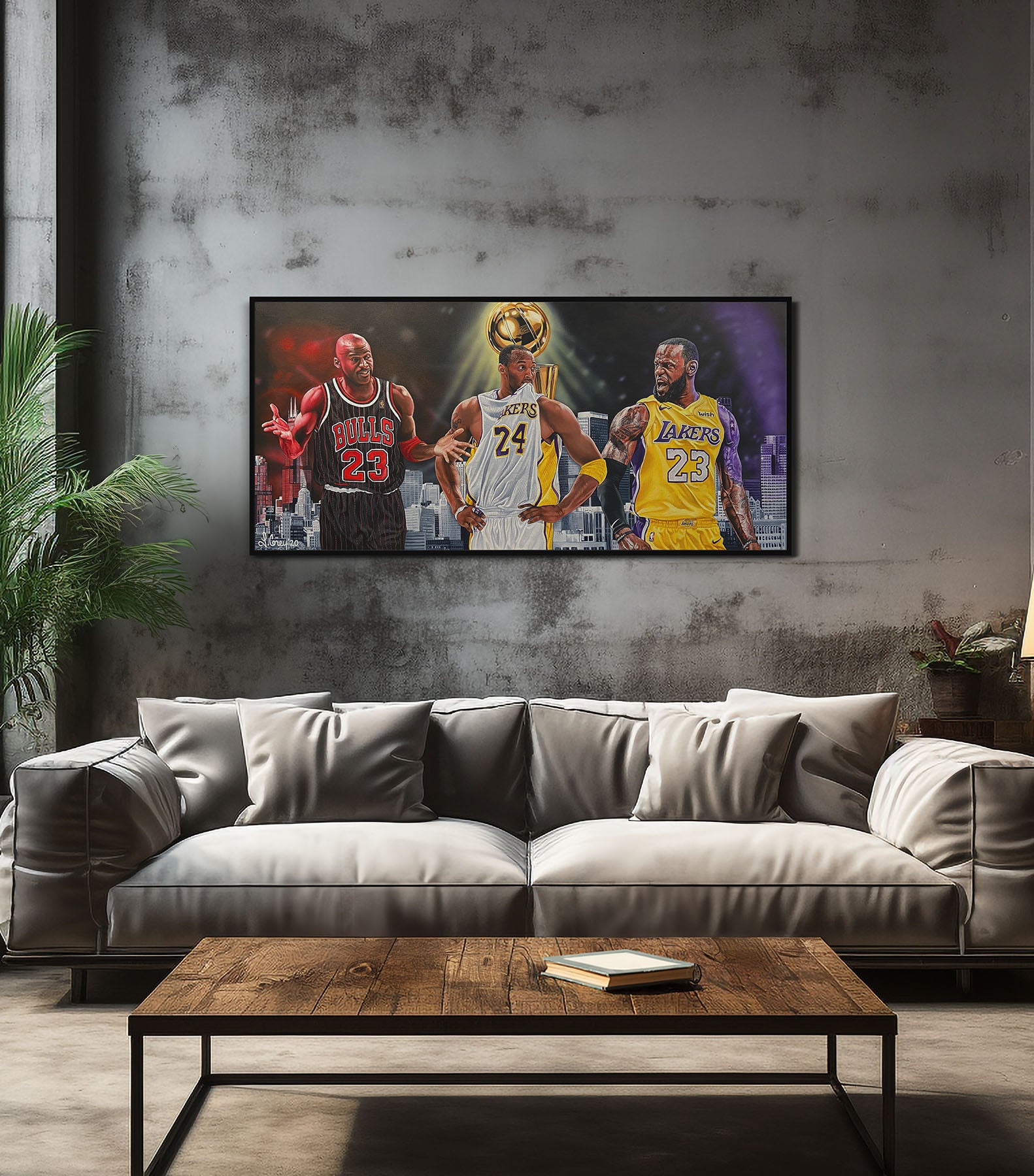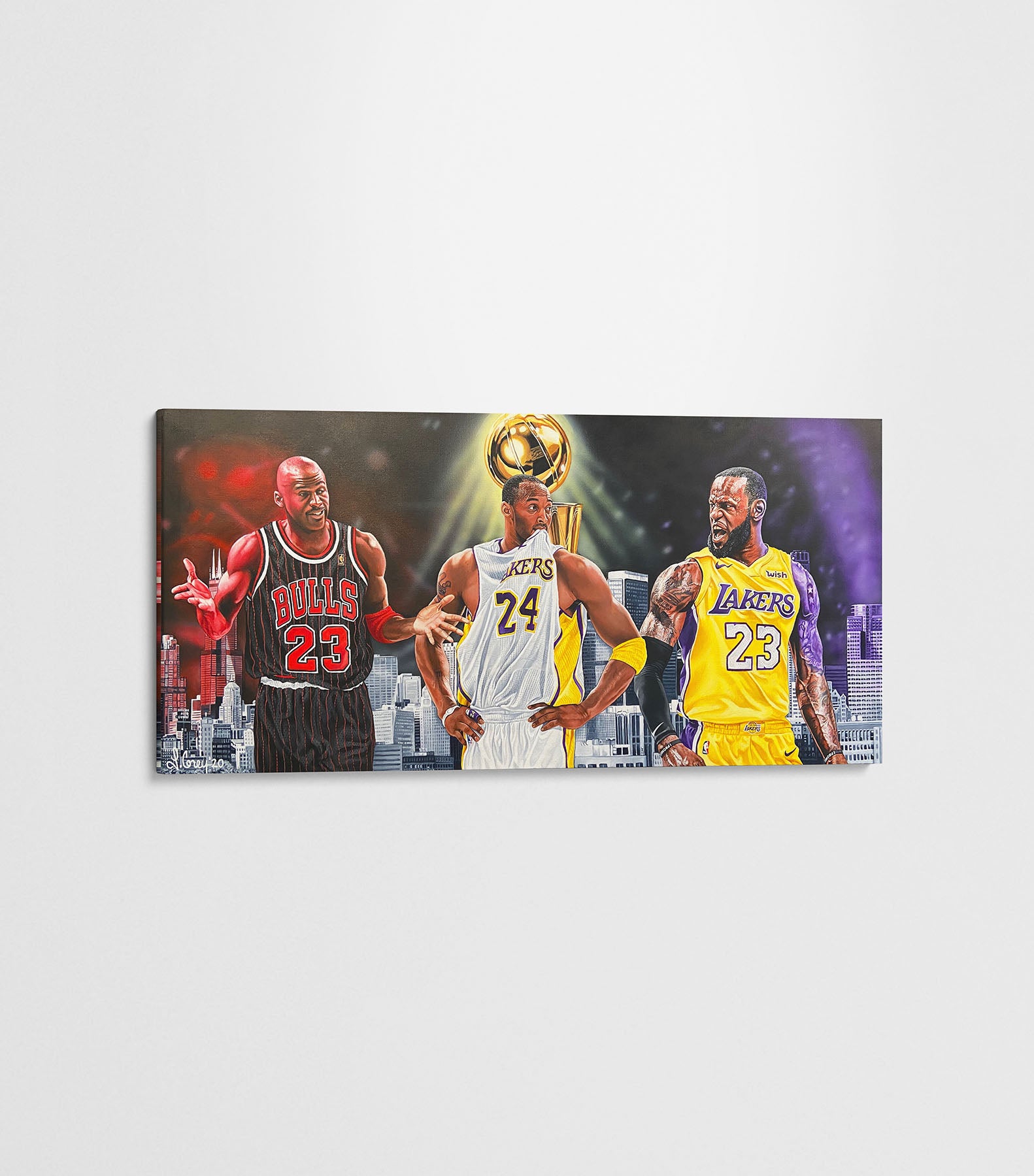 This painting represents the Greatest of All Time, Kobe Bryant, Lebron James and Michael Jordan.